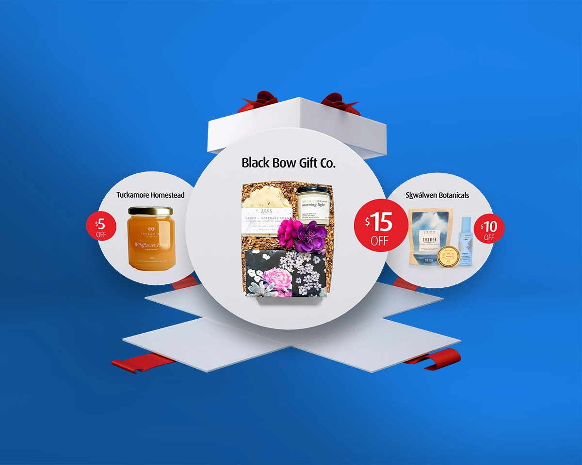 Nous vous invitions à découvrir ce qui se cachait dans les cadeaux tout autour de vous grâce à une expérience de réalité augmentée. En utilisant votre téléphone, vous pouviez déballer tous les cadeaux que vous voyiez. Ainsi, vous obteniez des codes promo de petites entreprises que vous pouviez utiliser pour votre magasinage des Fêtes.